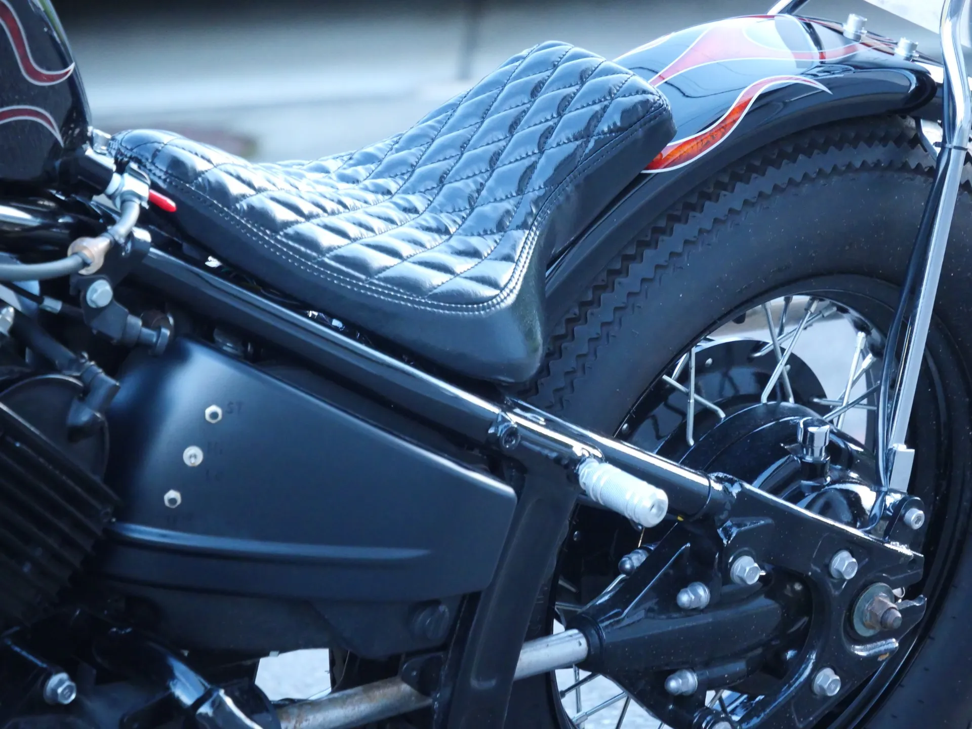 フラットフェンダー、ソロシート、ショットガンマフラー、ミッドハイステップ、パワフィル化、スポタン、21インチ、ナローハンドル、コンパクトヘッドライト、、、
